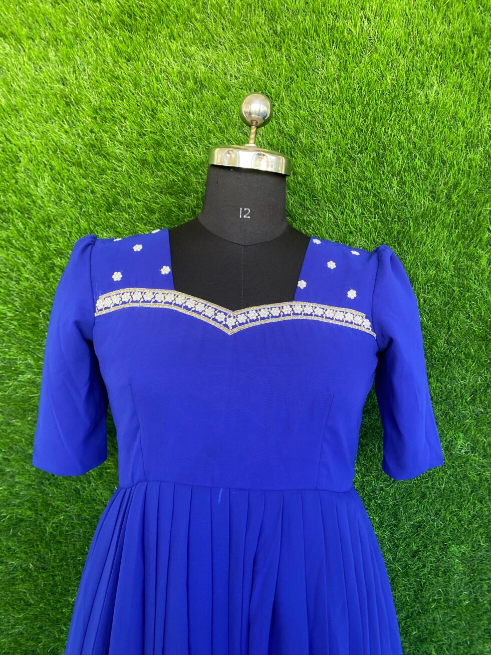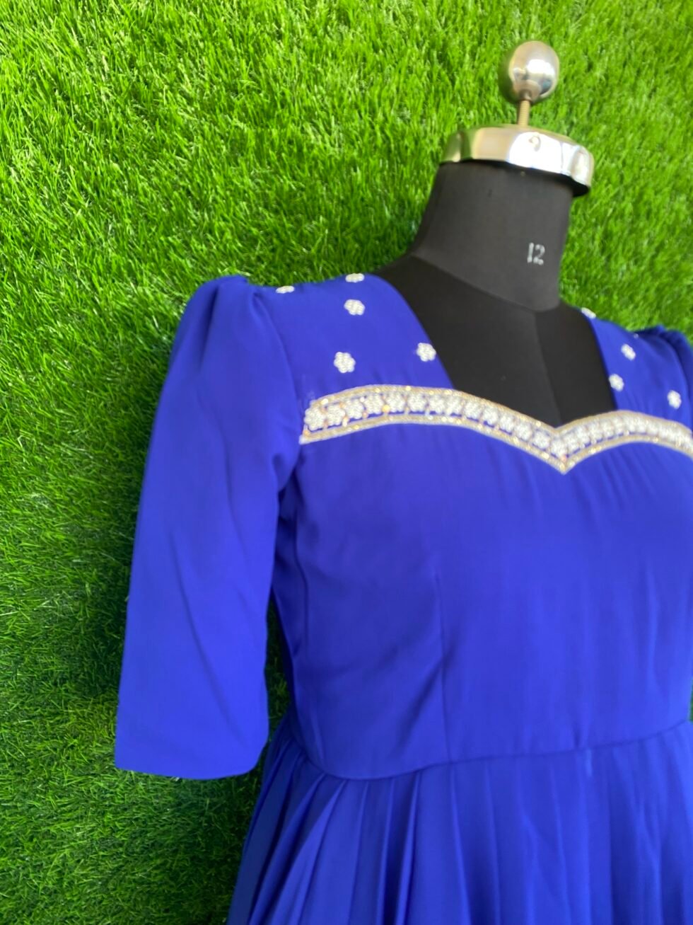 – Premium Quality Designer Blue Color Full Length frock with work on York part