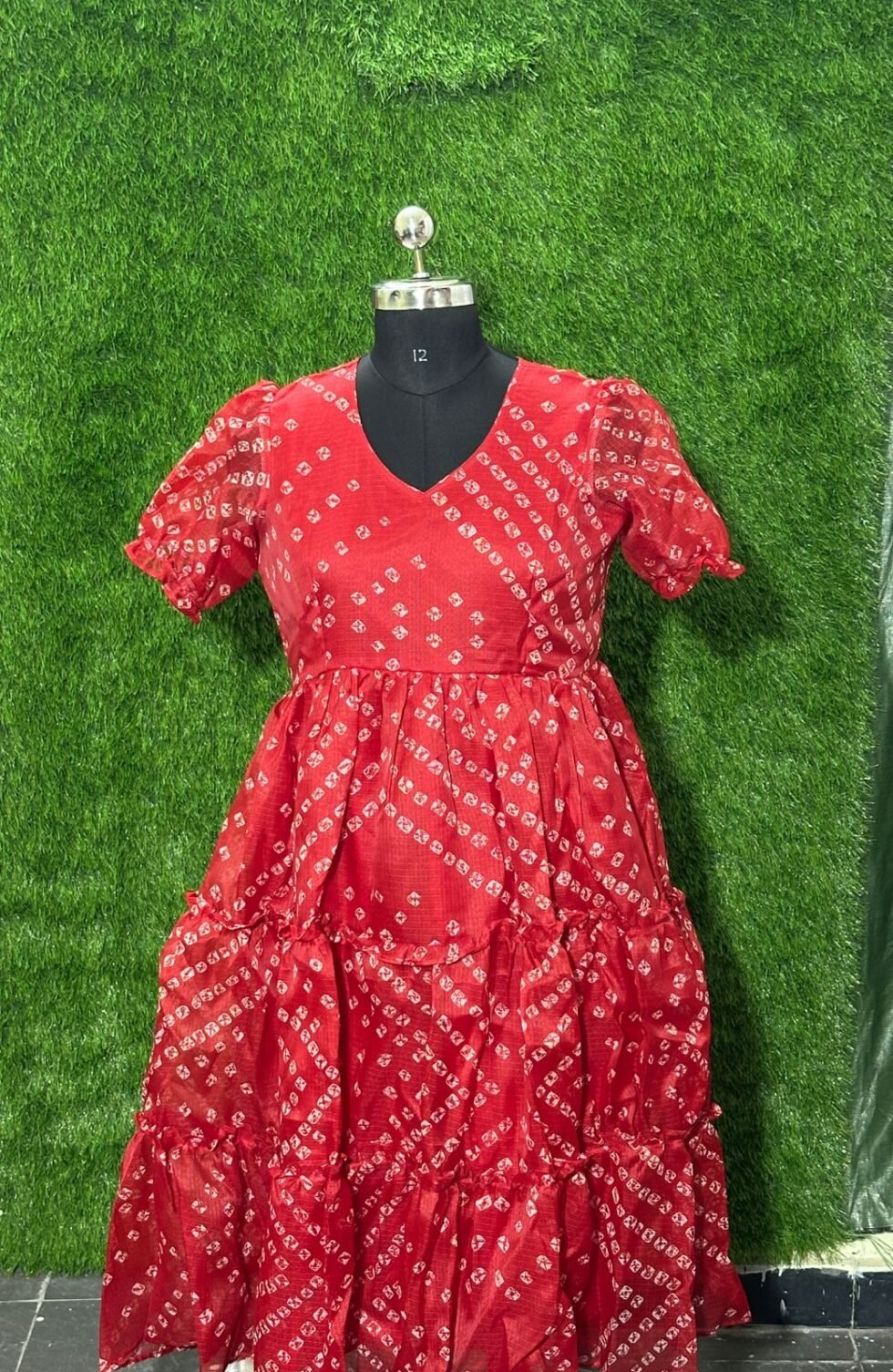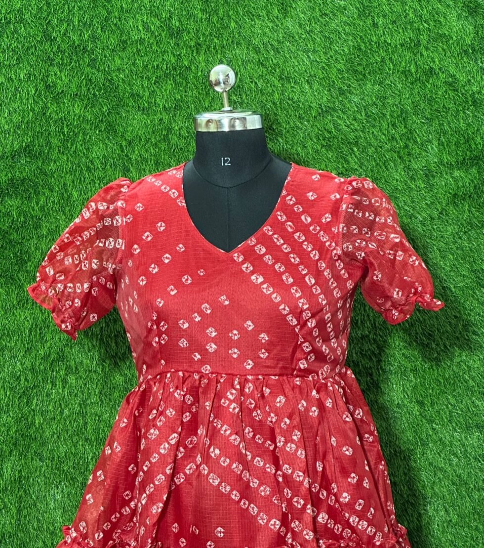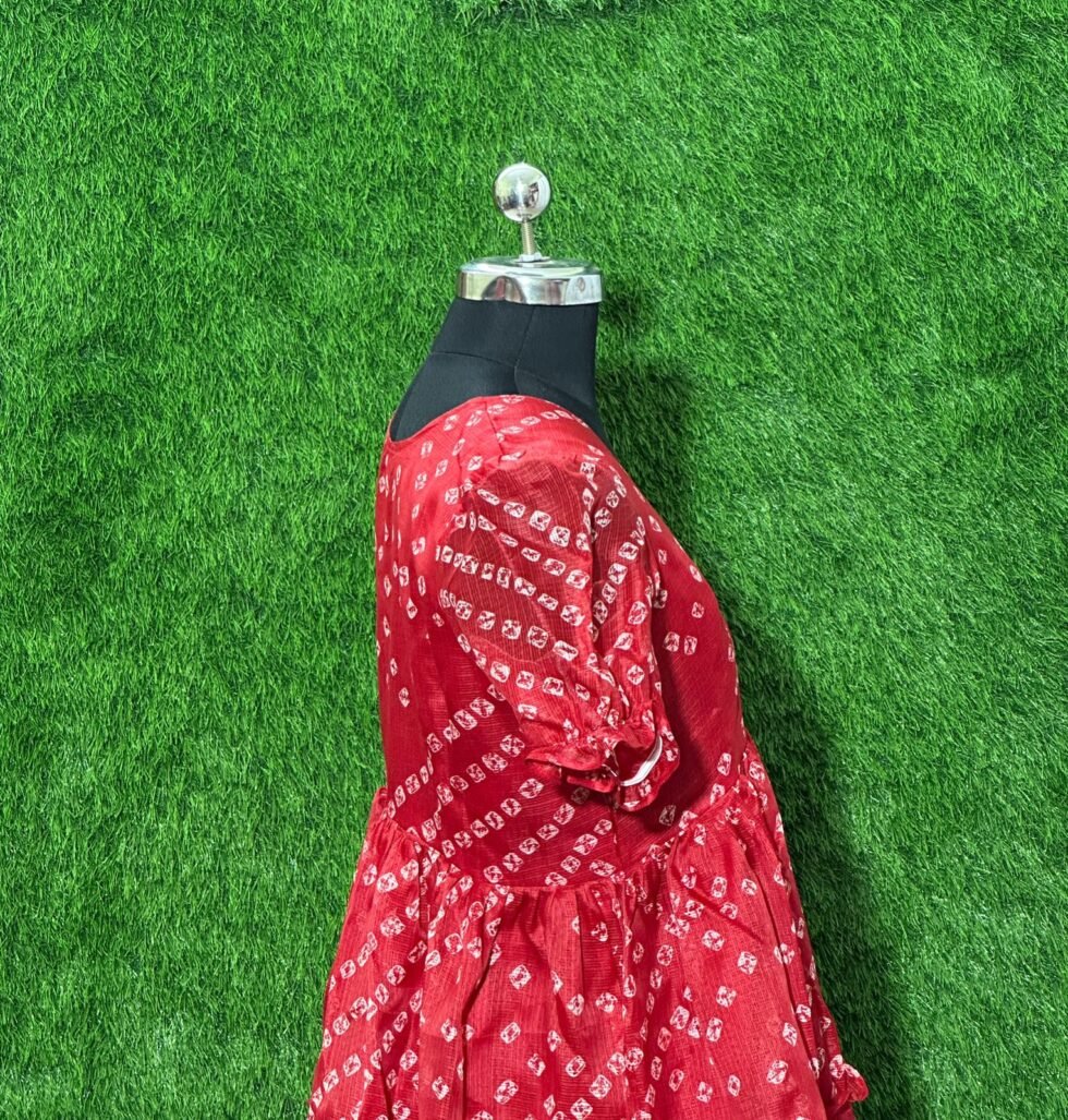 – Premium Quality Designer Dark Maroon Color Bandini frock