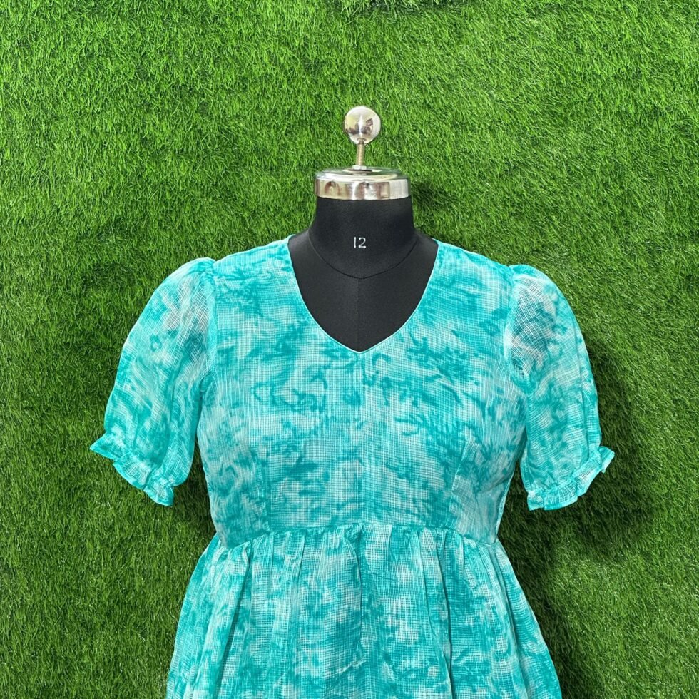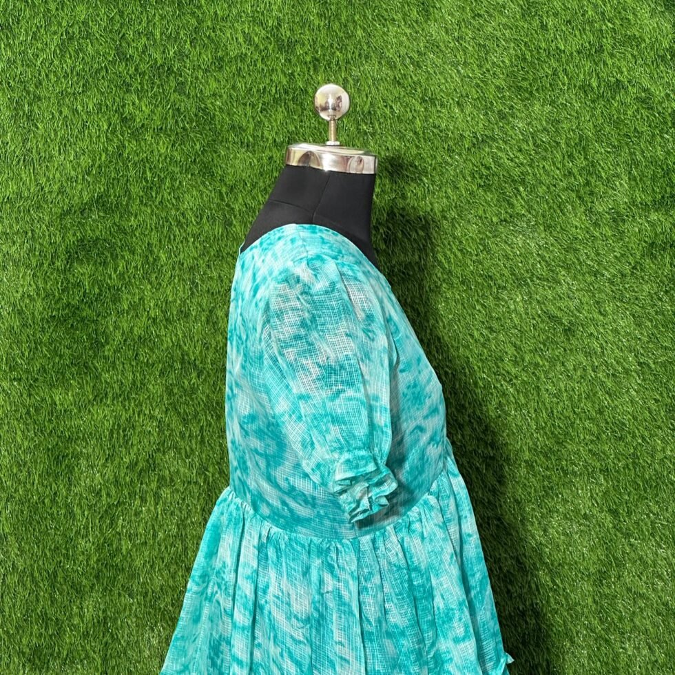 – Premium Quality Designer Sky Blue Color Floral Knee Length frock